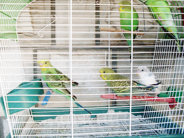 | Ove ptičice čame okačene ispred pet-šopa čekajući da ih neko udomi. |