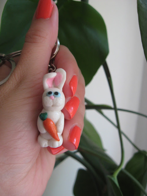 Also wanted to show you some of my new jewelry. As you may know, I’m a proud owner of a white bunny, so I asked a girl named Aleksandra to make me a bunny ring and a key-ring. I got them a couple days ago and I’m absolutely thrilled.