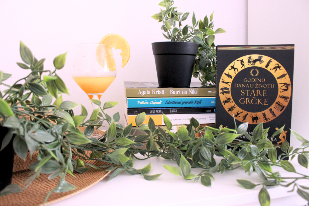 Zemljoradnica, Robinja, Kratkoprugaš (trkač), Diplomata, Nevesta, Graditelj, Trgovac, Sviračica na liri – ovo su likovi koje pratimo tokom godine i iz čije perspektive saznajemo mnoštvo zanimljivih istorijskih podataka o životu u Grčkoj u 3. veku pre nove ere. Likovi su fiktivni, ali su događaji koji se pominju (poput gradnje hrama dinastije Ptolomeja) i običaji zasnovani na istorijskim činjenicama. Čitanjem ove knjige steći ćemo podrobniji uvid u to kako je tekla godina običnog čoveka, od oktobra do septembra. Zanimljiv koncept, svakako, i dopada mi se što je dovoljno informativna, a opet, ne zatrpa čitaoca podacima. Poglavlja su kratka, brzo se čitaju; naići ćemo i na poneku ilustraciju, kao i na mapu na samom početku knjige. Svakako ću čitati i “24 sata u staroj Atini“ koju sam uzela još prošle godine.
